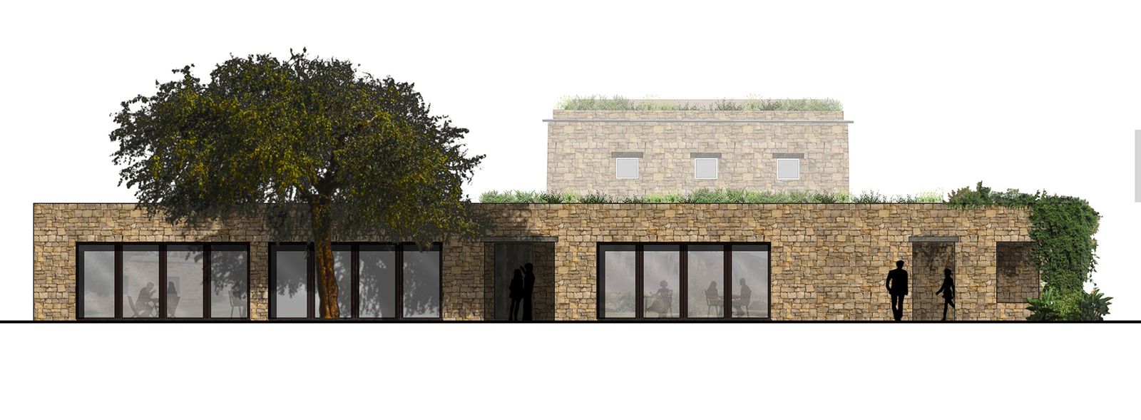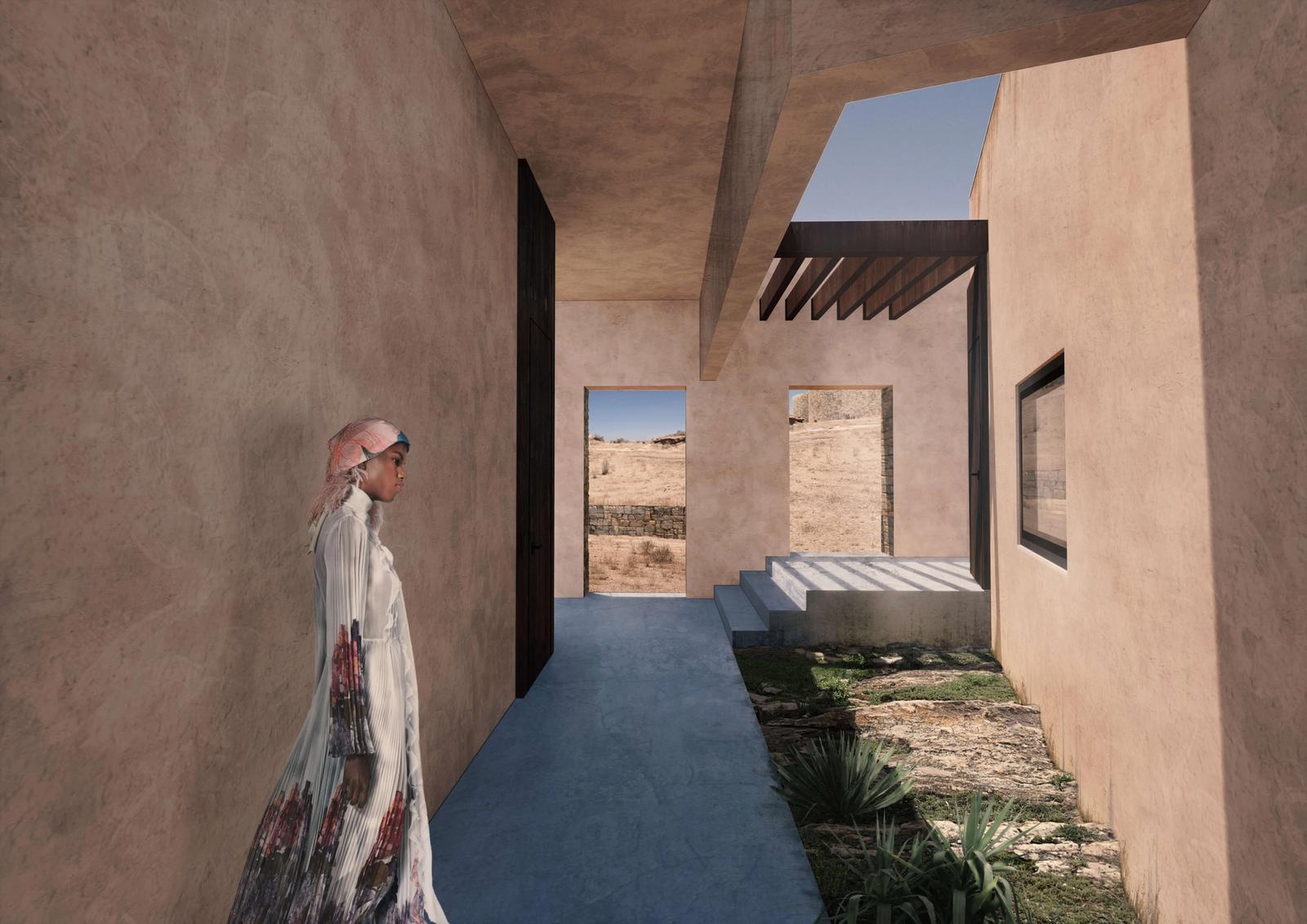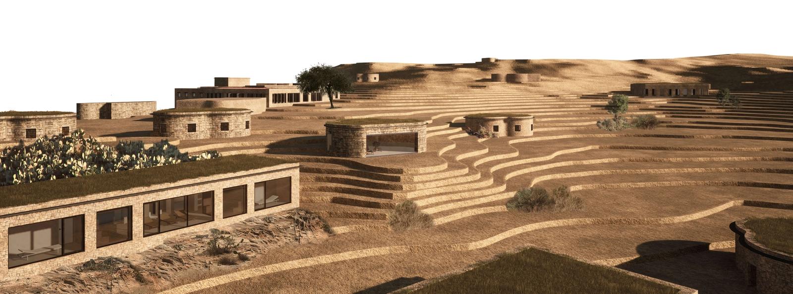 Muri in pietra a secco, tetti verdi ed intonaci, il cui pigmento naturale è ricavato da un misto di sabbia e pietra polverizzata del posto, contraddistinguono l’intervento che, con la sua tecnologia vernacolare, ben si armonizza con il territorio e mantiene una continuità stilistica e formale con la preesistenza.