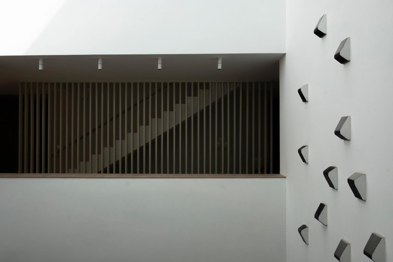 Particolare cura è stata data all’illuminazione: alla sera l’edificio si illumina come una lanterna, con la luce che esce dai fori e dalle grandi vetrate, distribuite in modo da creare un gioco armonico di geometrie.